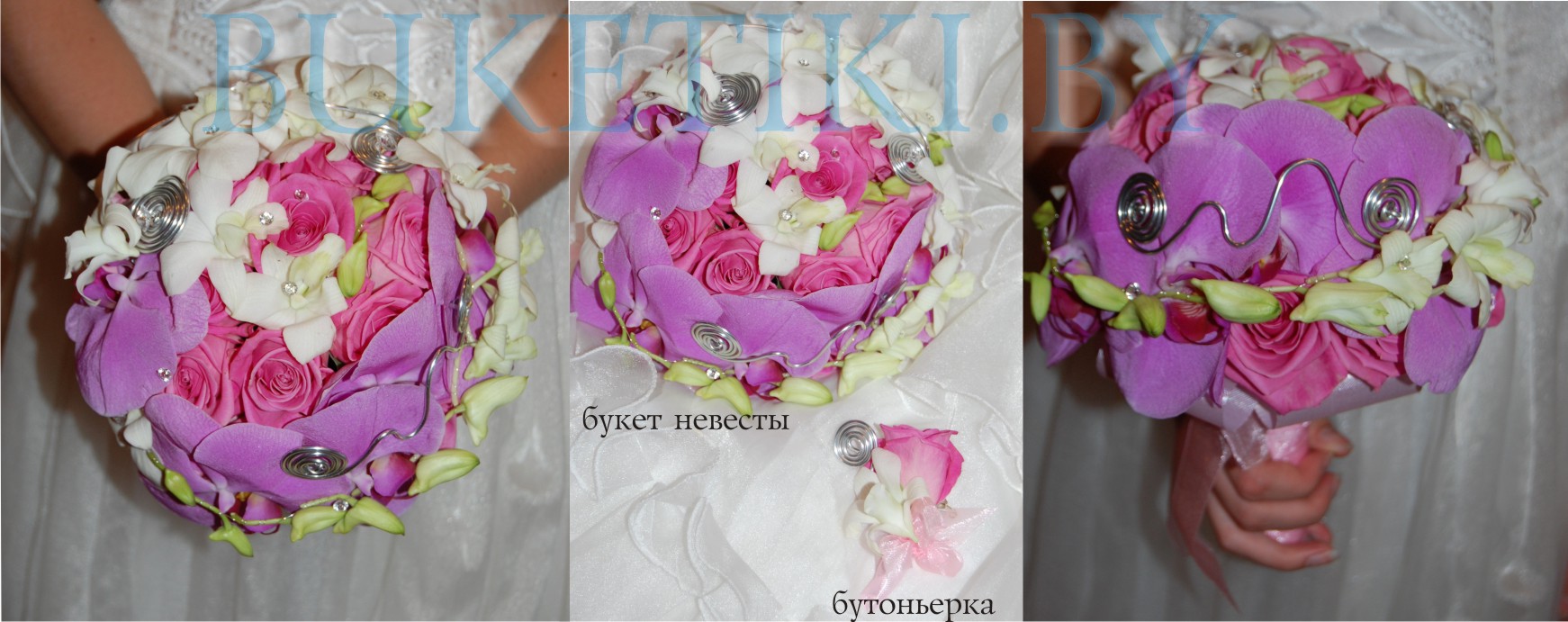 Орхидея дендробиум, орхидея фаленопсис, роза. Подробнее об этом букете читайте в блоге.